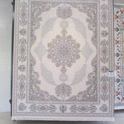 فرش ماشینی ۱۲۰۰ شانه نقشه صوفی کرم گل برجسته