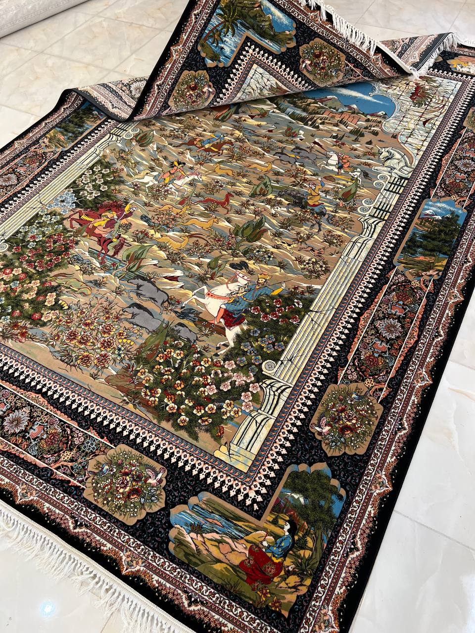 فرش ۱۲۰۰ شانه طرح شکارگاه + فیلم