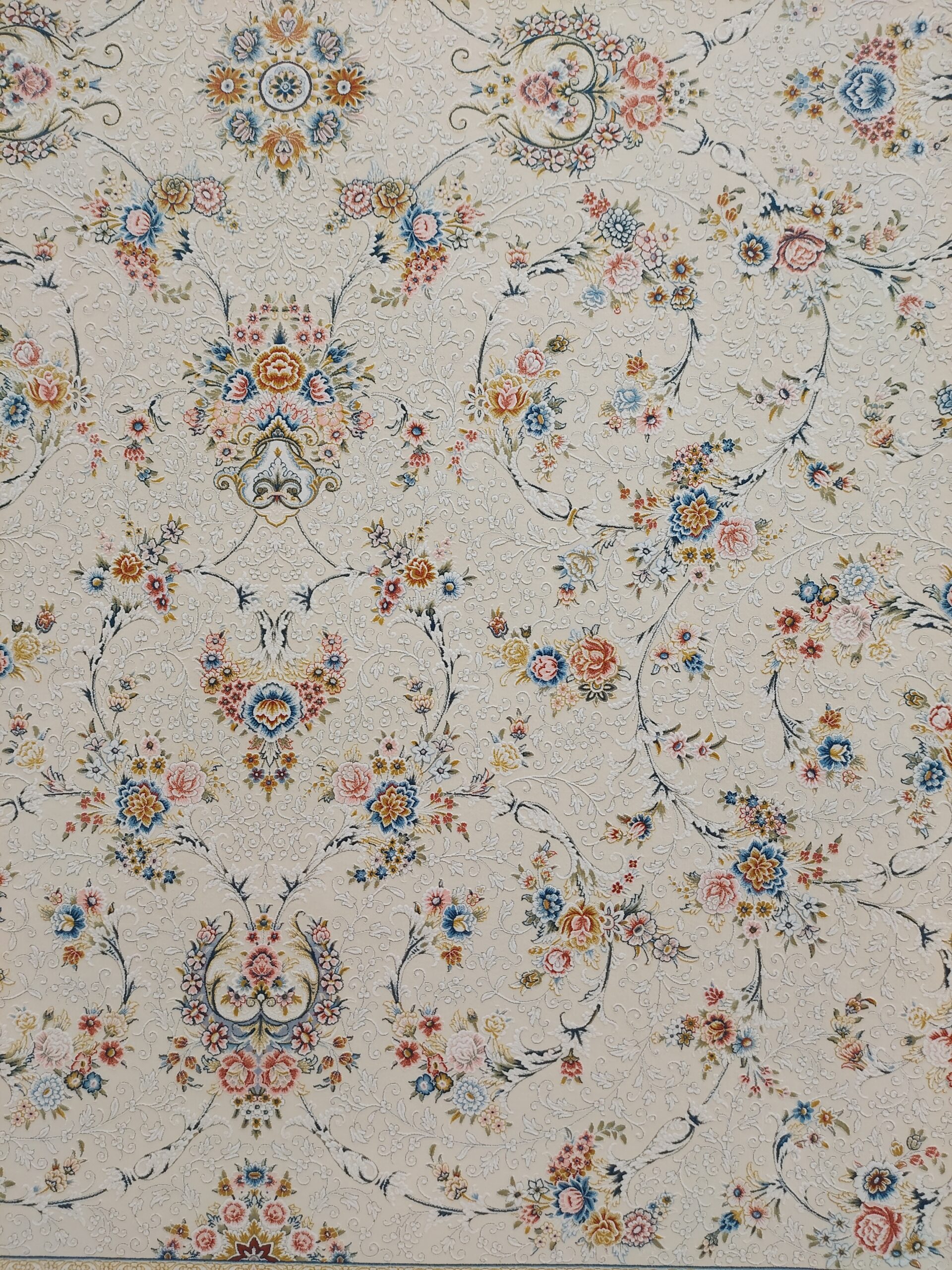 فرش ماشینی 1200 شانه تراکم 3600 برجسته طرح ارغوان کرم