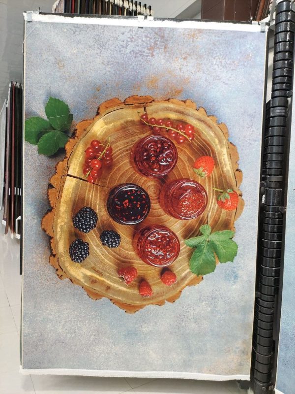 فرش آشپزخانه طرح 100499 تمام رنگ 700 شانه با تراکم 3300 بافته شده است. این فرش ریزبافت و دستباف گونه جدید دارای بافت ظریفی است که با الیاف لطیف شکل گرفته است. نخ های مورد استفاده در بافت فرش کاملا هیت ست و بدون پرزدهی هستند. طرح مربا و ترکیب با میوه و برگ ترکیبی از عناصر مختلف است که جلوه ای هنرمندانه دارد. رنگ زمینه روشن و طرح فرش در این زمینه کاملا واضح و زیبا به چشم میخورد که به راحتی میتوان با هر رنگ و دیزانی ست کرد. کیفیت فرش امیرکبیر بسیار فوق العاده و عالی است. این فرش به عنوان یک فرش آشپزخانه با کیفیت طراحی شده است به همین خاطر دارای الیاف درجه یک است که خیلی دیر کثیف می شود.