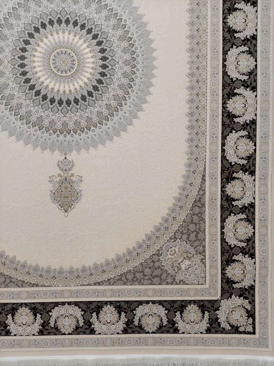 فرش آنا کرم 1200 شانه حاشیه دودی گل برجسته