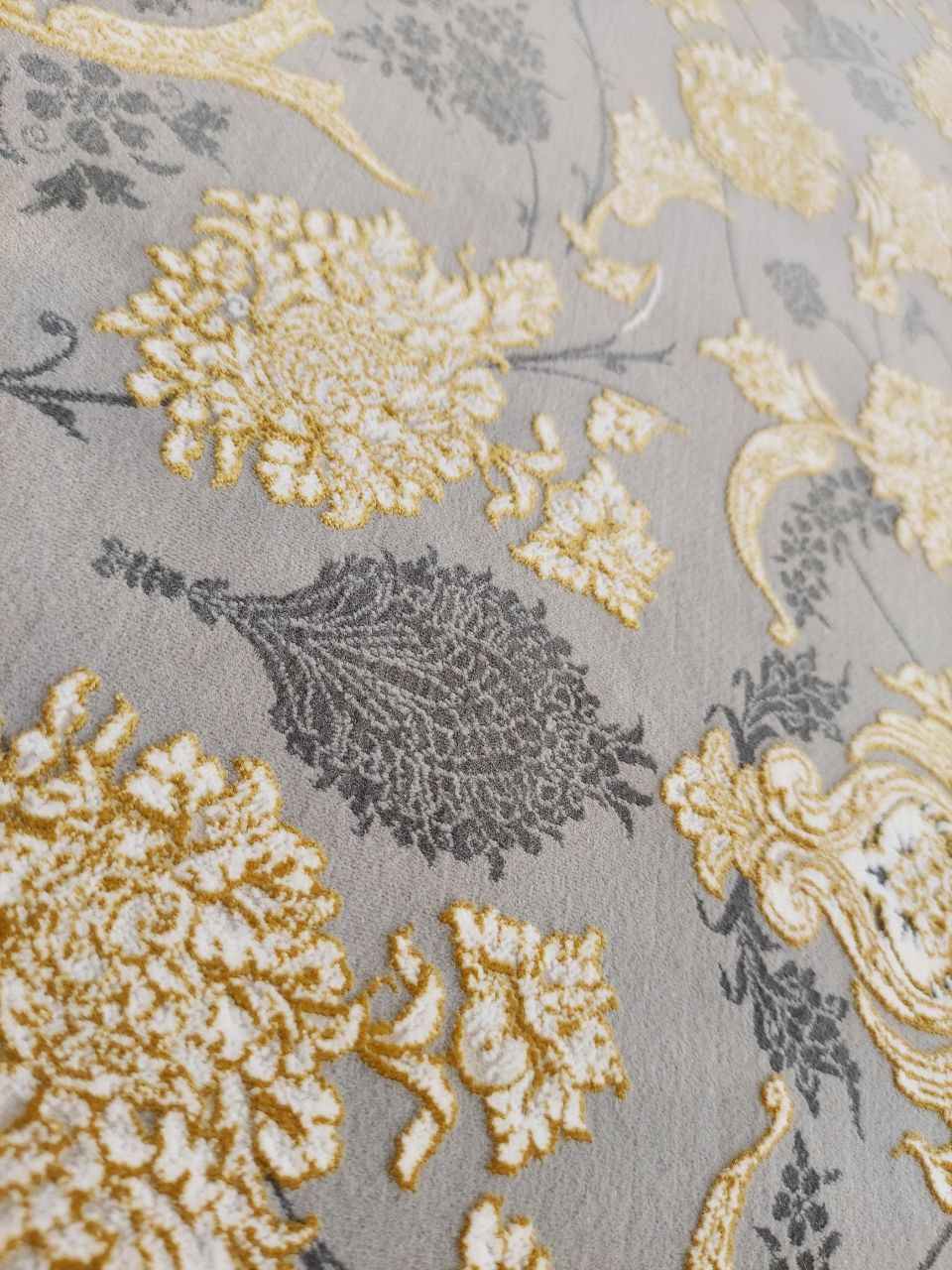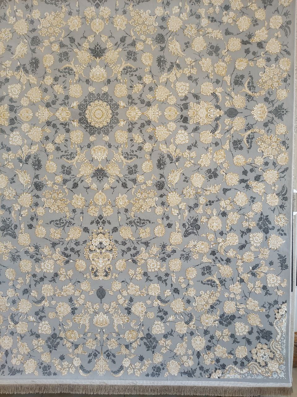اگر از طرح های دارای حاشیه های زیاد و نقشه های دارای اجزای بزرگ خسته شده اید، فرش ماشینی ۱۲۰۰ شانه طرح افشان بی حاشیه می تواند بهترین گزینه برای شما باشد. سبک افشان همراه با گل های طلایی ان نمایی خاص به منزل شما خواهد بخشید.