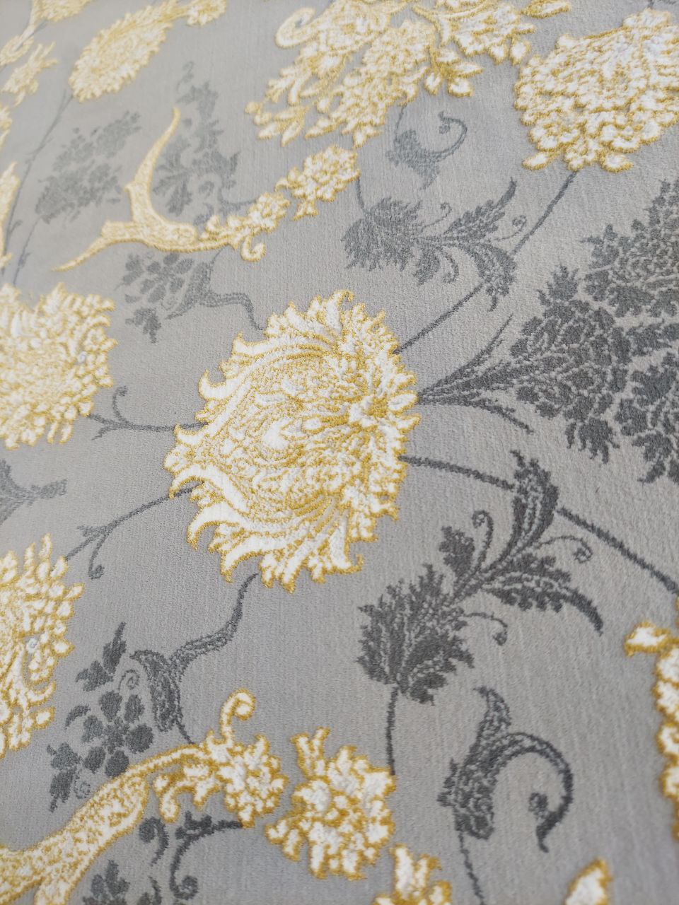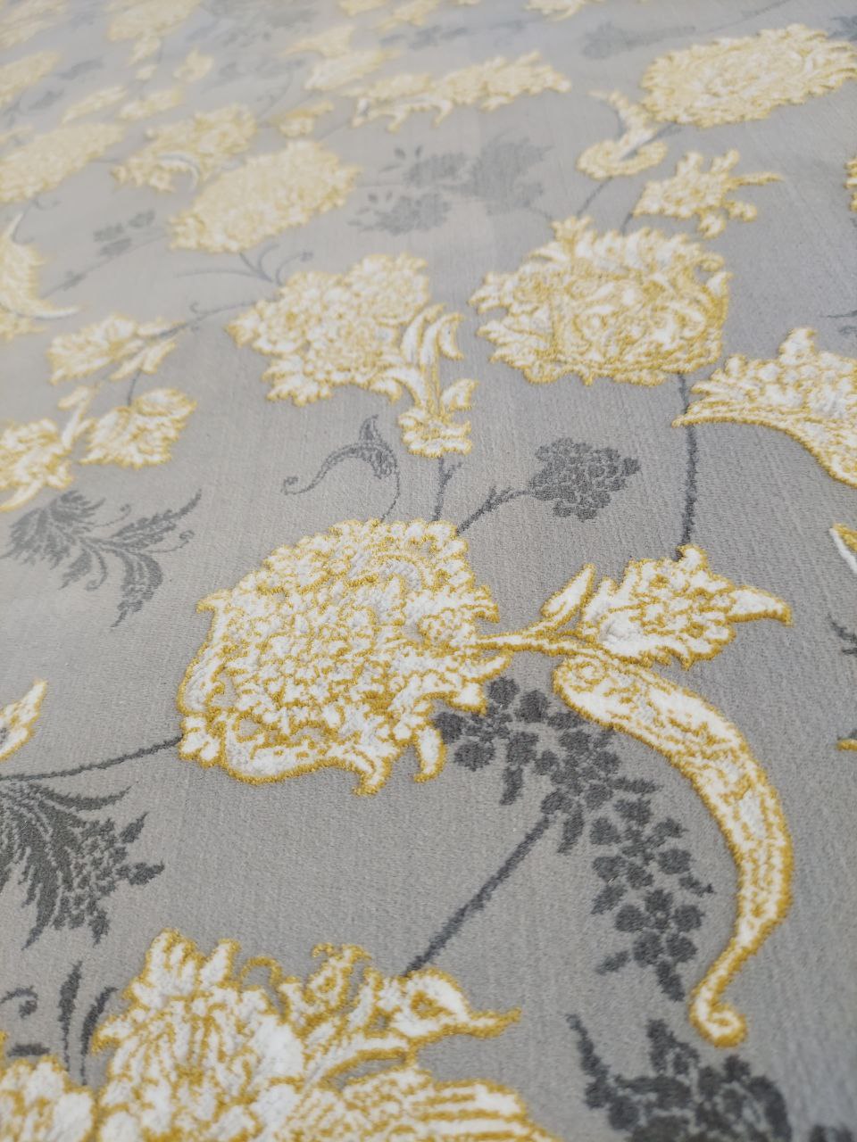 فرش ماشینی طلاکوب طرح افشان بی حاشیه طوسی