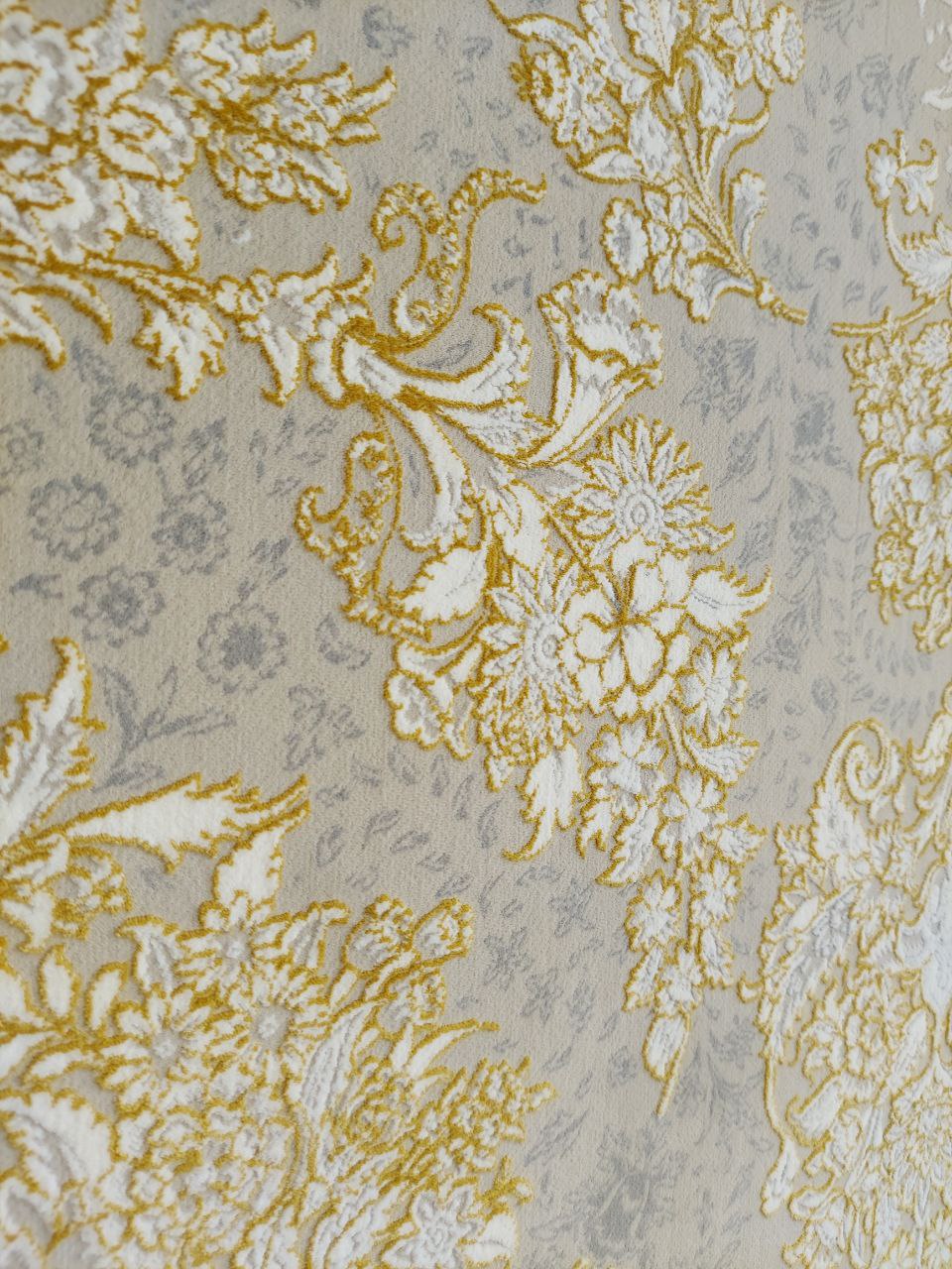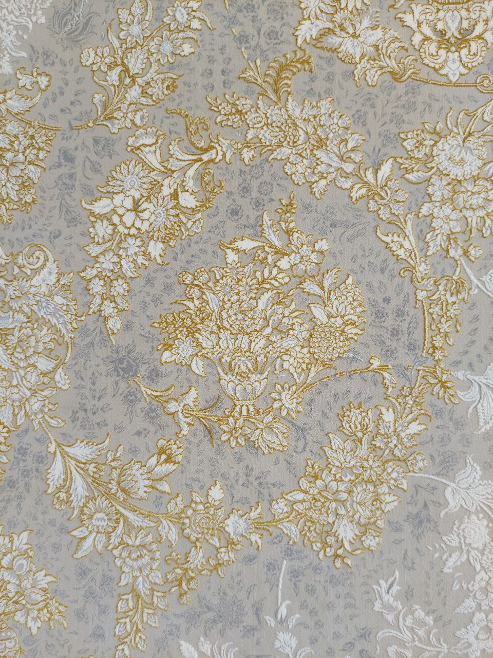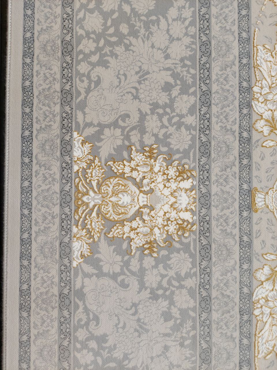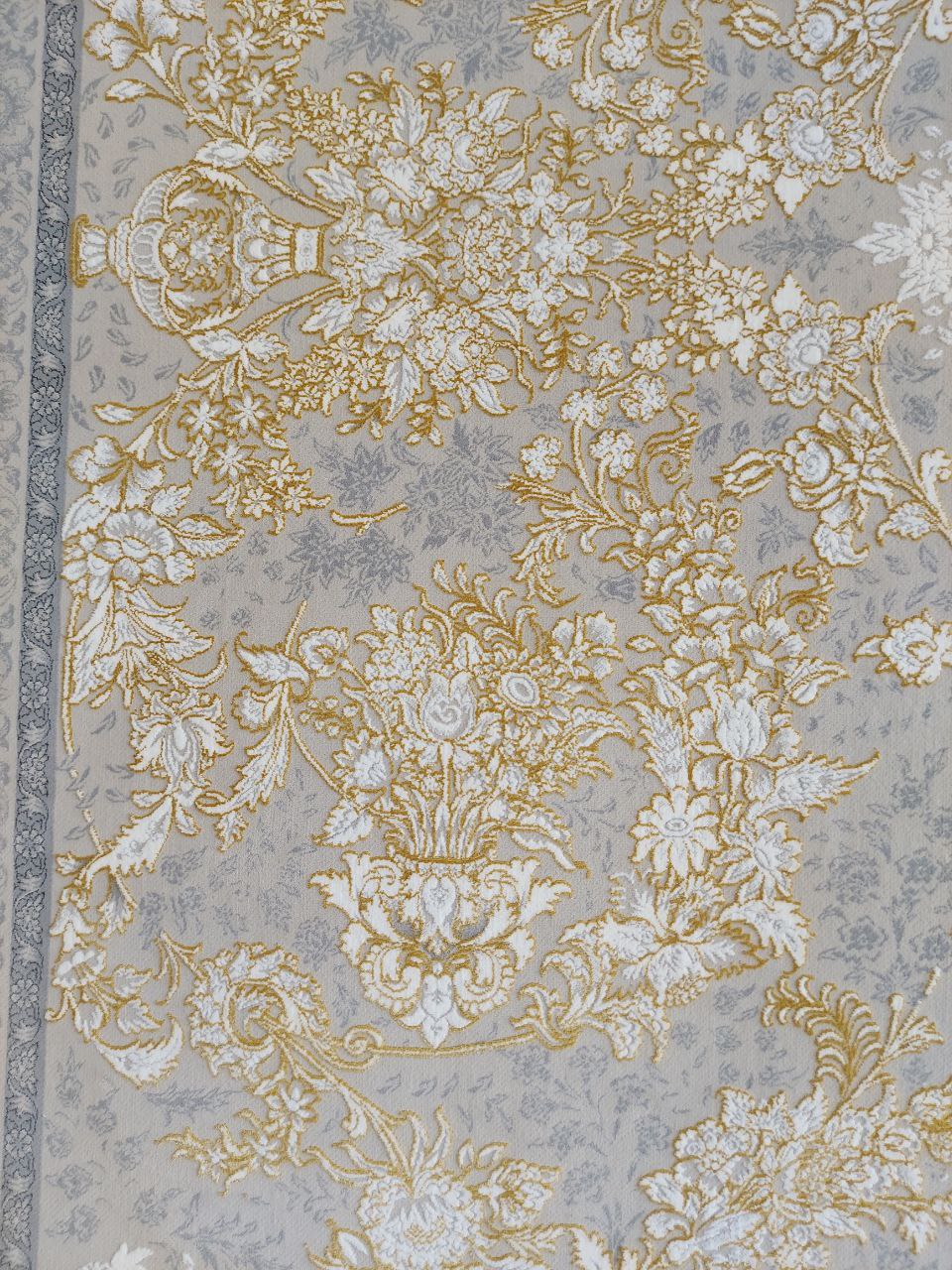 فرش ماشینی طلاکوب طرح بهارا نقره ای