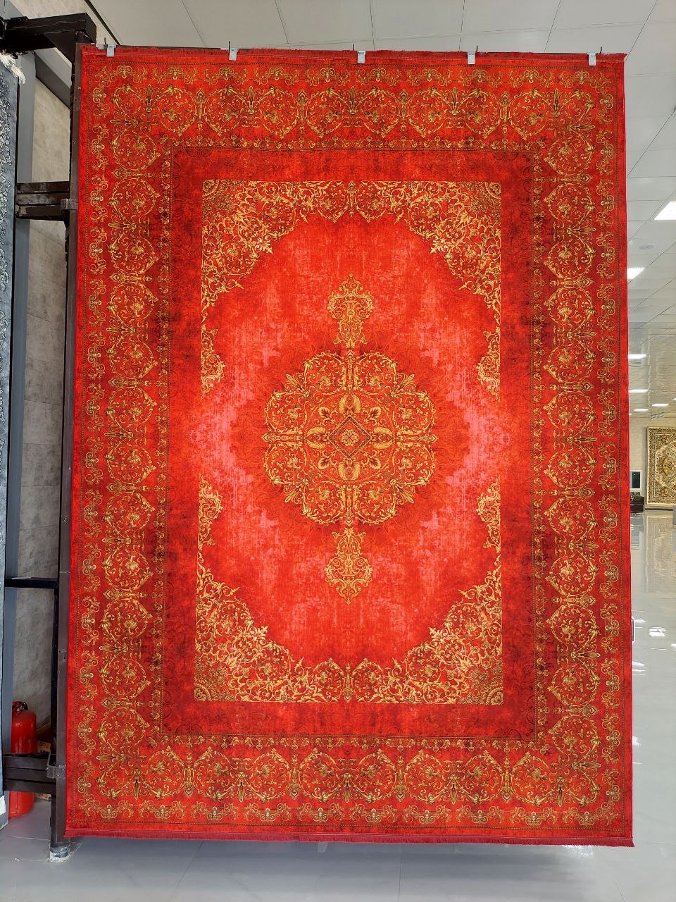 فرش ماشینی فرش طرح دستباف 1200 شانه کد 300402 قرمز در ابعاد اصلی 6متر، 9متر، 12 متر و هر ابعاد فرعی که به صورت کناره و پادری نیاز داشته باشید؛ قابل تولید و بافت می باشد.