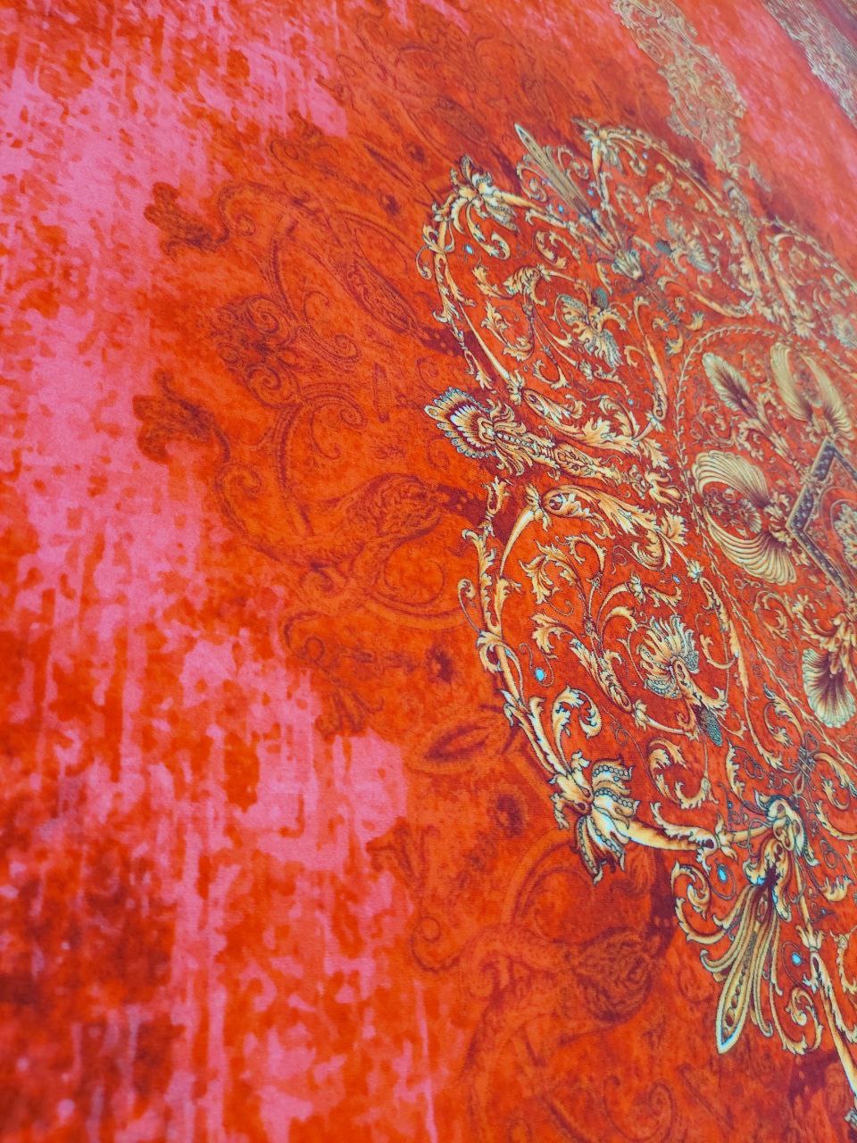 فرش طرح دستباف کد 300402 قرمز که از کلکسیون ورساچ میباشد با کیفیت عالی بدون پرزدهی و ضد حساسیت بوده و رقیب اصلی فرش دستبافت است که زیبایی را در تولید فرش ماشینی به ارمغان آورده است. اگرچه قیمت این فرش ها بالاتر از فرش های 1200 شانه معمولی است ولی زیبایی بسیار بیشتری را به منزل شما میبخشد. این فرش از نمونه فرش های طرح دستباف است که معادل فرش 77 رج میباشد. در این فرش نخ پلی اوژن هیت ست شده استفاده شده است که دارای کیفیت بالایی می باشد.