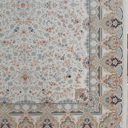 فرش طرح باغ جان کرم 1500 شانه یکی از زیباترین و مدرن ترین طرح ها در دسته فرش های 1500 شانه میباشد. این طرح با گل های به هم پیوسته و خوشه ای نمایی متفاوت از دیگر طرح ها خلق کرده است. رنگ گل ها به دلیل استفاده از نخ برایت درخشش خاصی خلق کرده و با رنگ کرم زمینه ترکیب روشن و زیبایی را به وجود آورده است که این ویژگی ها باعث فروش زیاد این محصول در شرکت امیرکبیر شده است.