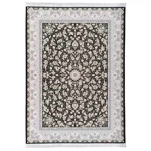 فرش ۱۲۰۰ شانه طرح ملیسا ذغالی گل برجسته