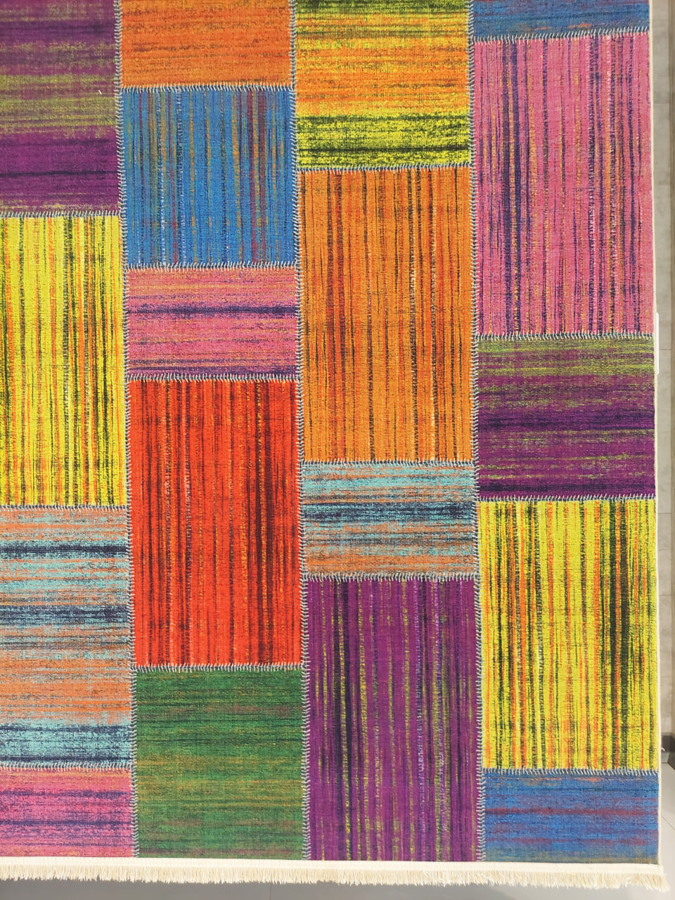 فرش طرح چهل تکه کد 100504 تمام رنگ 700 شانه یکی از فانتزی ترین و شاد ترین طرح های فرش های کلاریس است که با طرح چهل تیکه و تقریبا تمامی کلکسیون رنگ های جذاب بافت شده و پر از انرژی مثبت و آرامش میباشد. همانطور که در طرح های قبلی اشاره کردیم فرش ها چهل تیکه قدمت بسیار زیادی دارند و از انجایی که فرش های دستبافت قدیمی پاره و فرسوده میشدند، قسمت های سالم از فرش های دیگه را جدا کرده و به هم میبافتند و فرشی کامل درست میشد به نام فرش چهل تیکه.