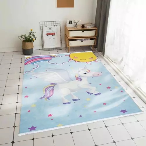 فرش کودک طرح اسب تک شاخ بالدار کد 100287