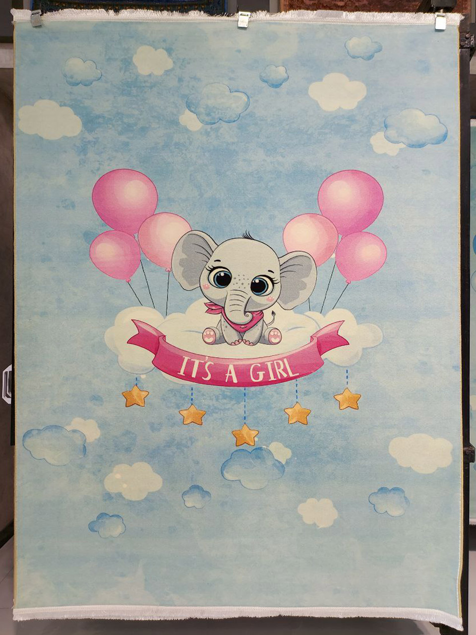فرش کودک طرح تعیین جنسیت کد 101264 دارای طرح تعین جنسیت با یک فیل و بادنک های آبی رنگ زیبا که بیشتر پسرانه میباشد. فرش کودک از سری فرش های مدرن ارائه شده در بازار به شمار میرود که به دلیل طراحی و ویژگی های منحصر بفرد خود آن را به عنوان فرش خواب کودک شناخته و خریداری مینمایند. طرح های متنوعی از این بافته ها مطابق با سن و جنسیت کودک ارائه شده است که فرش کلاریس طرح کودک تعیین جنسیت پسرانه یکی از این نمونه ها است که همان طور که در تصویر آن را مشاهده میکنید طرح و رنگ آن سبب شده تا این بافته به عنوان فرش اتاق کودک پسرانه خریداری شود.