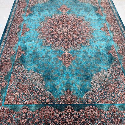نقش ترنجدار و طیف رنگی فیروزهای و آبی آن نیز فضایی هماهنگ و دلنشین خلق میکند. درحالیکه ضخامت استاندارد، تجربهای لوکس برای محیط داخلی به ارمغان میآورد. همچنین این محصول استانداردهای ملی را رعایت میکند. علاوه بر این، با ویژگیهای ضد حساسیت و قابلیت شستوشوی آسان، کاربردی و مطمئن است. به همین خاطر برای خرید فرش ایرانی، گزینهای عالی به شمار میرود.