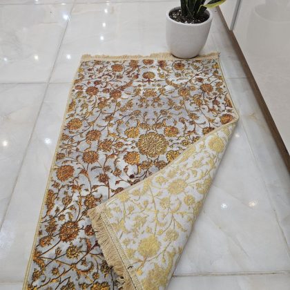پادری ویانا 401416 نقره ابی با گل های افشان طلایی که در زمینه روشن بر کار رفته جلوه ای زیبا القا میکند که یکی از زیباترین و خوش رنگ ترین محصول فرش امیرکبیر کاشان میباشد و در حال حاضر در دسترس خریداران عزیز میباشد. از ویژگی خوب این پادری ها میتوان به قابلیت شست و شو ، ضد حساسیت بودن ، بدون پرز دهی و کیفیت و طول عمر بالا اشاره کرد. تنوع زیادی از این پادری ها وجود دارد که میتوانید طرح و رنگی هماهنگ و یا نزدیک به طرح و رنگ فرش های خودتان خریداری کنید.