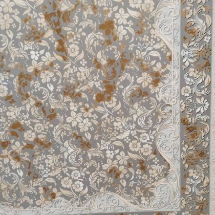 فرش 1200 شانه طلاکوب طرح سمن سا نقره ای