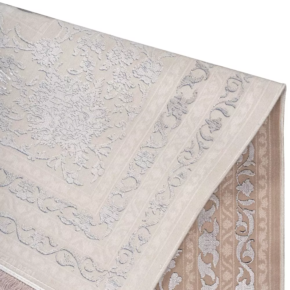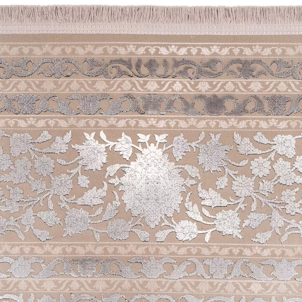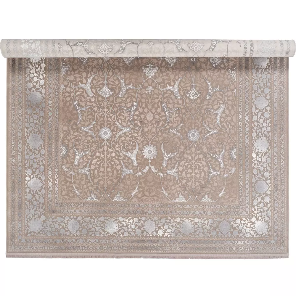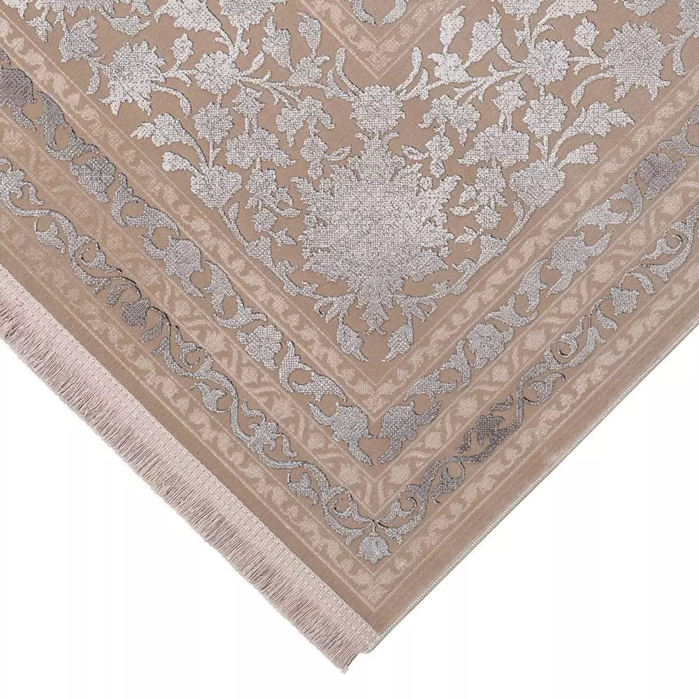 فرش طرح 10LA0260 نسکافه ای 1500 شانه گل ابریشم
