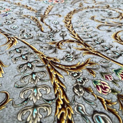 رنگ زمینه نقرهای در فرش 1500 شانه طرح دستباف 2000005160 علاوه بر این که جلوهای خنثی و متعادل به فضا میبخشد، باعث برجسته شدن نقوش اسلیمی و جزئیات رنگی میشود. این رنگ با بازتاب نور مناسب، حس روشنایی و وسعت محیط را افزایش میدهد.