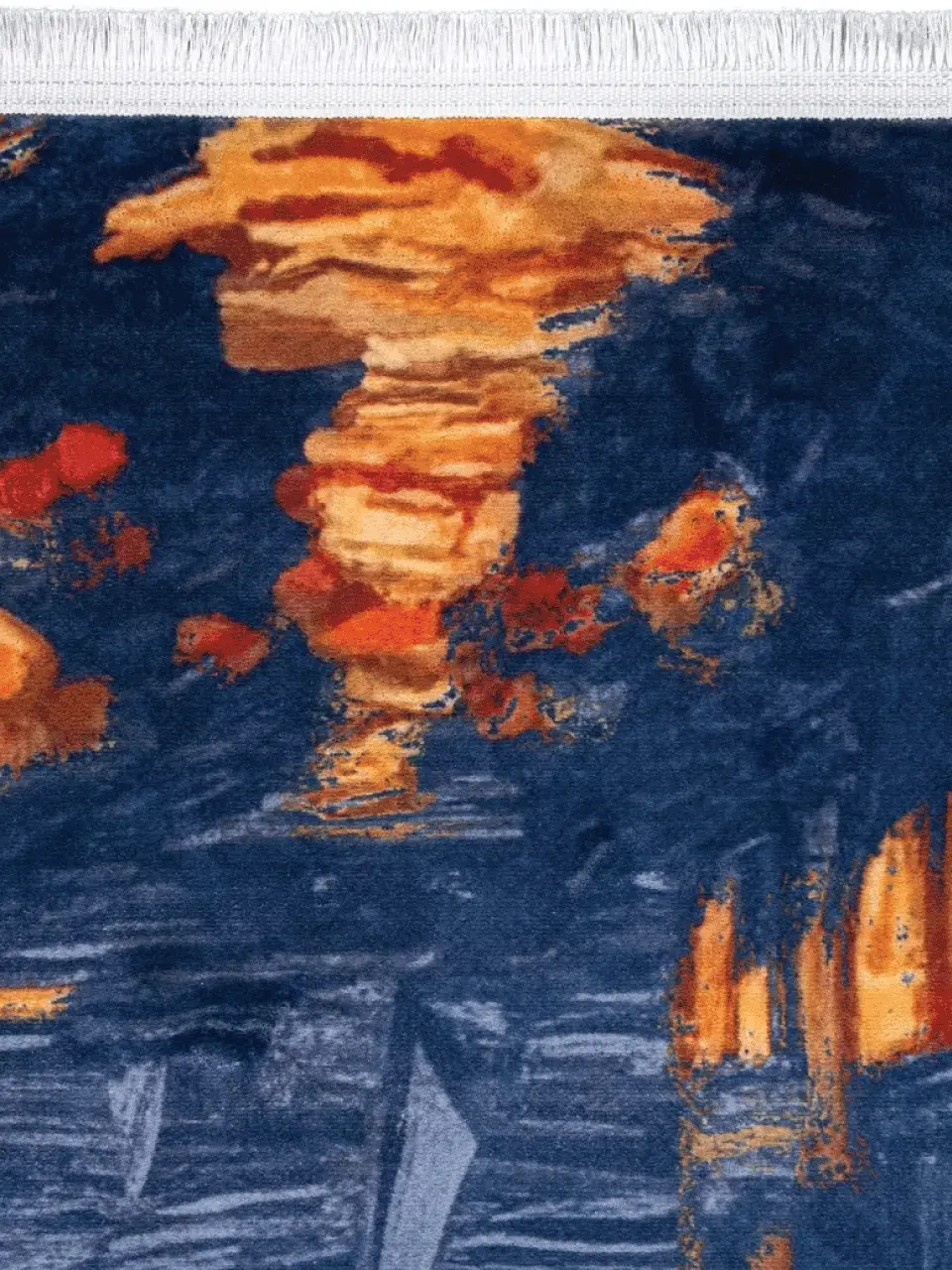 فرش کودک طرح دختر ماه کد 25KM0050 یکی از پرفروشترین مدلهای فروشگاه فرش امیرکبیر است. این فرش با طراحی خیالانگیز و رمانتیک، دختری کوچک را نشان میدهد که روی یک ماه خمیده نشسته و در دل آسمانی پرستاره غرق در رویاهای شبانه خود است. ترکیب رنگهای سرمهای، طلایی و نارنجی در پسزمینهای الهامگرفته از آسمان شب، فضایی جادویی و آرامشبخش را برای اتاق کودک شما خلق میکند.