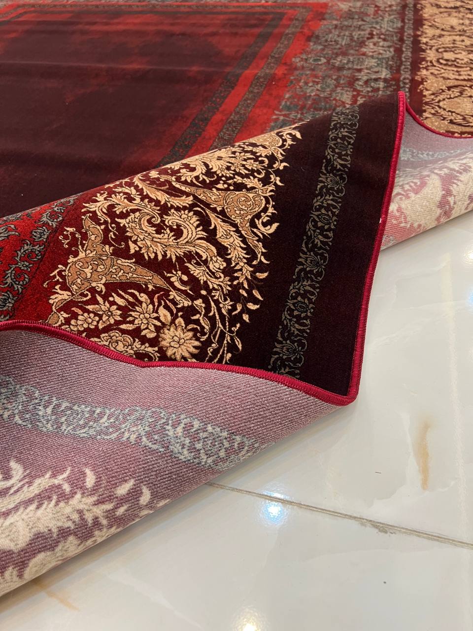 فرش 1240 شانه طرح دستباف کد B1030 قرمز هم مثل بقیه ی محصولات فروشگاه دارای ضمانت کیفی می باشد. مهترین جزء اثرگذار بر کیفیت فرش جنس الیاف به کار رفته در بافت آن می باشد. جنس نخ خاب فرش الیاف ورتکس هیت ست شده می باشد که از کیفیت و دوام بسیار بالایی برخوردار بوده و کاملا مقاوم در برابر شستشو، حرارت و کوبیده شدن می باشد. در اثر مصرف و شستشو هیچگونه تغییر حالت و سفتی در فرش ایجاد نمی شود.