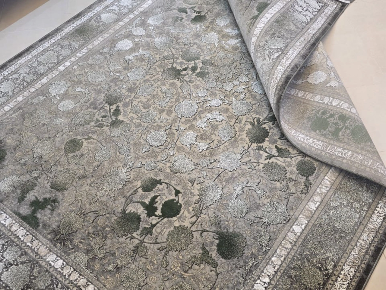 فرش ۱۲۰۰ شانه طرح 2520 نقره ای گل برجسته + فیلم