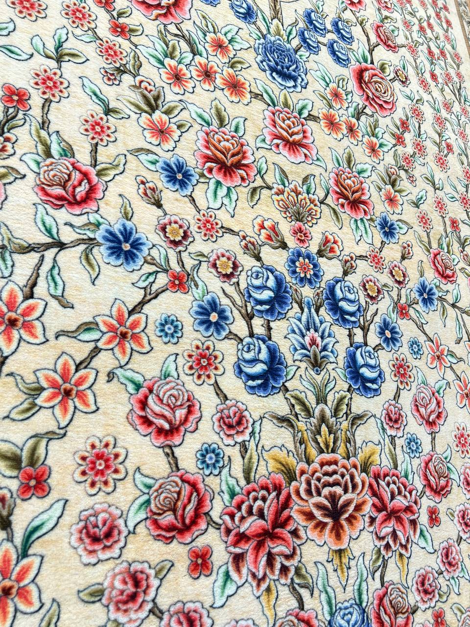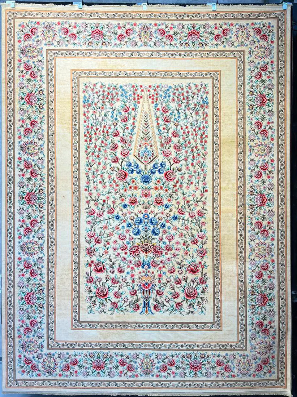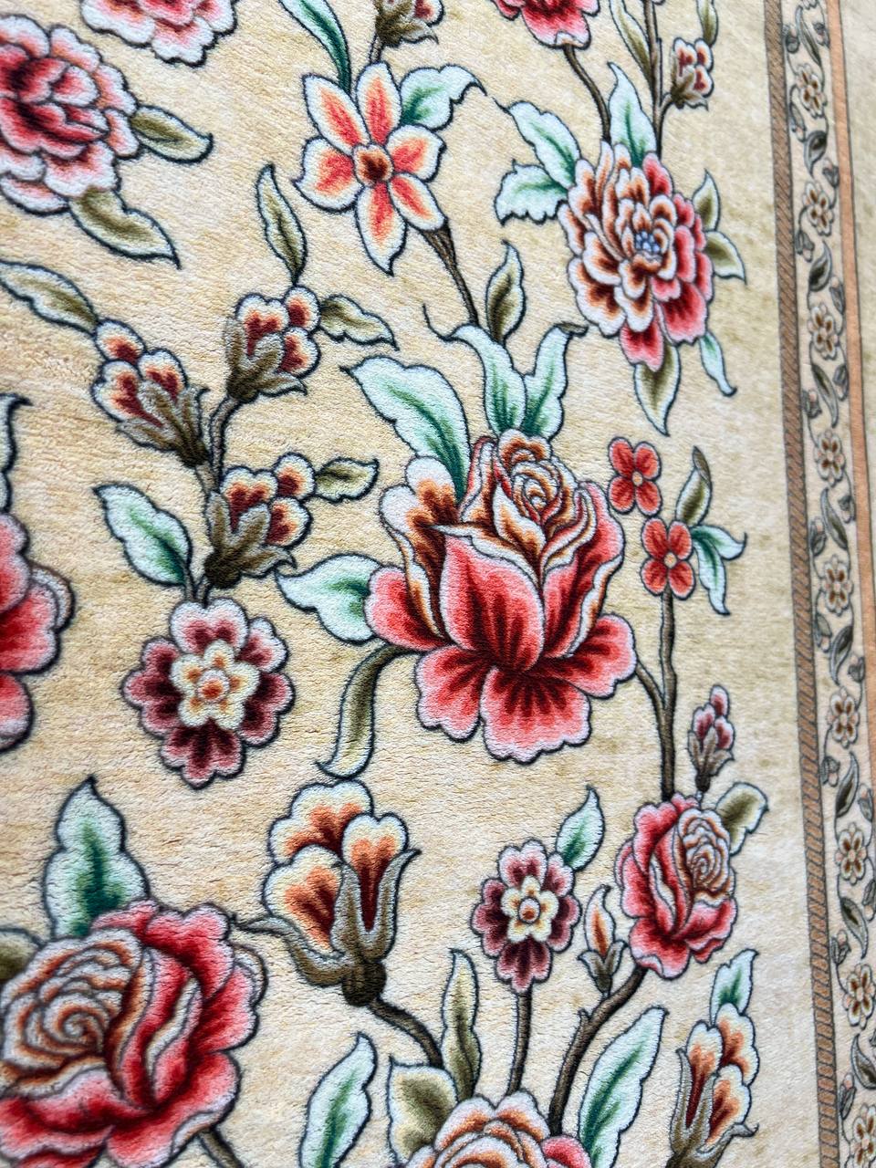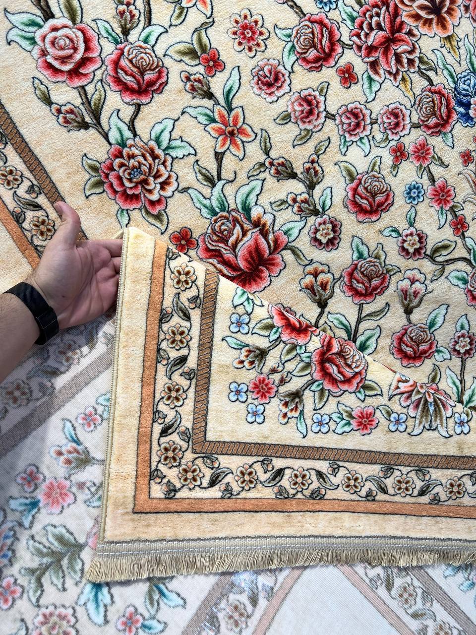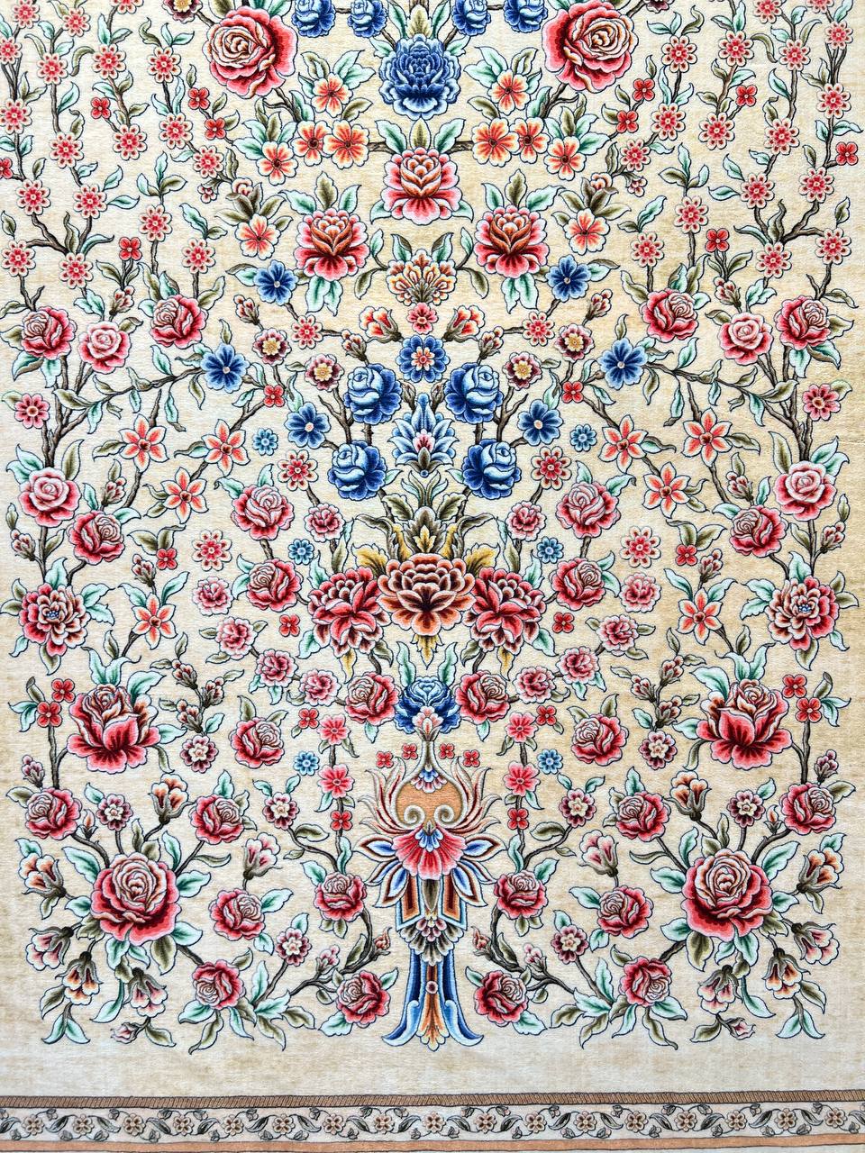 فرش طرح باغ گل کرم معادل 77 رج دستباف