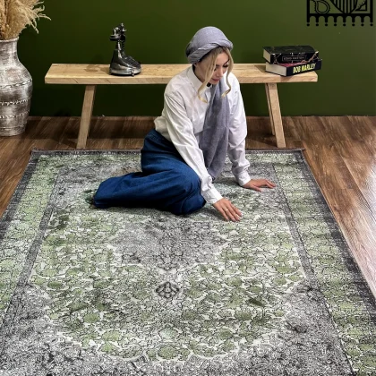 فرش مدرن آروین کد 73056 سبز ذغالی