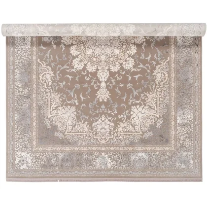 فرش طرح 10LA0250 نسکافه ای 1500 شانه گل ابریشم