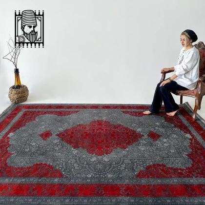 فرش وینتیج آروین کد 73001 طوسی قرمز