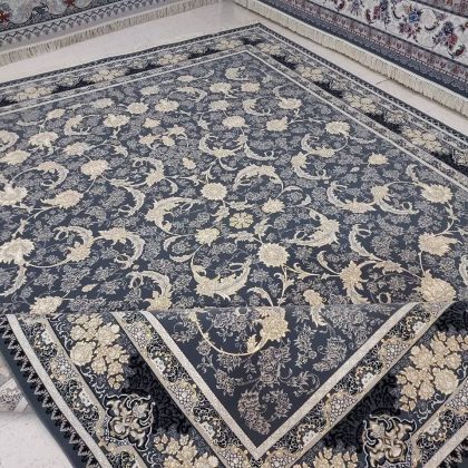 فرش رژا طلاکوب سرمه ای 700 شانه