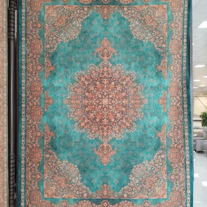 انتخاب رنگ هنگام خرید فرش ترنج دار بیشتر از هر سبک دیگری به خوانایی مرکزیت و تعادل کنتراست بستگی دارد. در واقع رنگ باید طوری انتخاب شود که ترنج در دل زمینه گم نشده و درعینحال اختلاف رنگی باعث ایجاد مرزبندی تند و آزاردهنده نشود. در فضاهای کلاسیک، ترکیبهای لاکی و سرمهای بیشترین هماهنگی را ایجاد میکنند. چون هر دو رنگ عمق بصری بالایی دارند و اجازه میدهند ترنج با جزئیات روشنتر مثل اکریلیک هایپربرنس یا پشم سفید بهتر دیده شود. برای فضاهای روشن و مدرن، رنگهای نقرهای، فیلی، آبی یخی، کرم – طلایی و فرش سبز عملکرد بهتری دارند. زیرا امکان ایجاد هارمونی با مبلمان خنثی را فراهم میکنند و مرکز فرش را بهصورت ملایم برجسته میسازند. نکته فنی مهم این است که در فرشهای تراکم بالا، رنگهای تیرهتر کیفیت نقشپردازی ترنج را بهتر نمایش میدهند.
