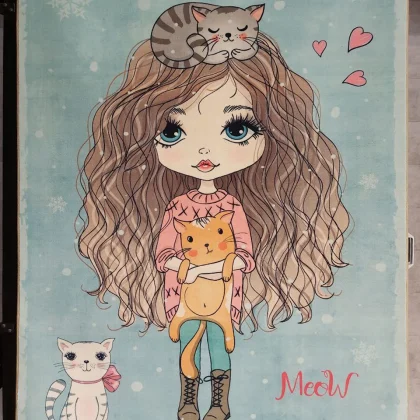 فرش کودک طرح پرنسس و گربه ها کد 101211 آبی