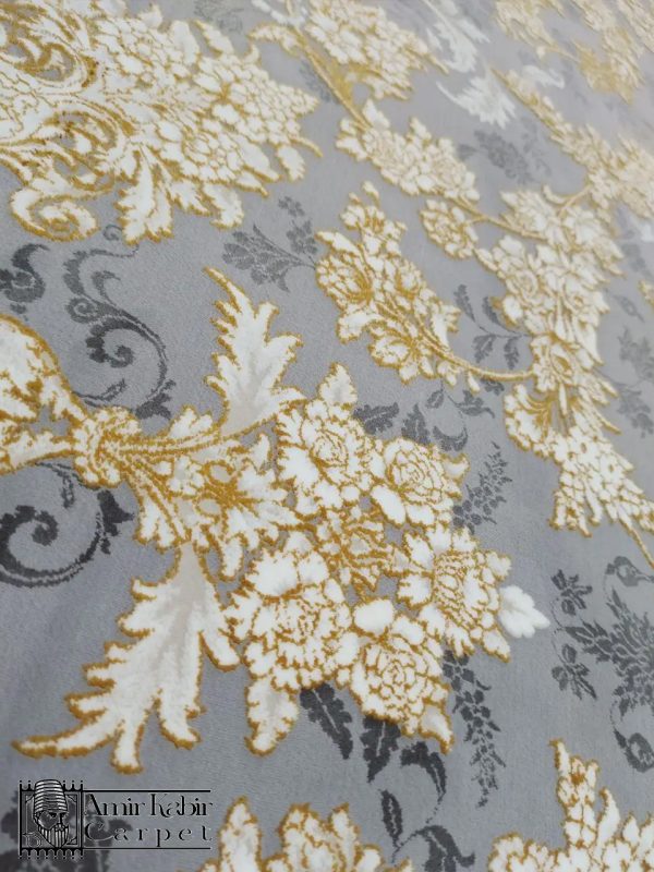 • فرش ماشینی طلاکوب طرح رزلند نقره ای 700 شانه