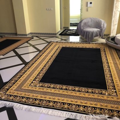 فرش ورساچه زمینه مشکی حاشیه طلایی